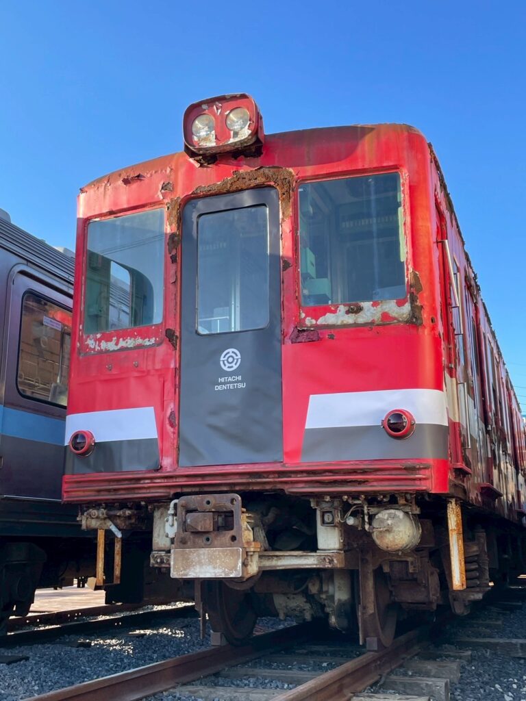 今回の目玉は何といってもデハ1002号が日立電鉄に行っていたら…という日立電鉄風装飾の取り付けでした! 快晴の中、20年ぶりに同僚がまとっていた日立電鉄の姿を現しました。