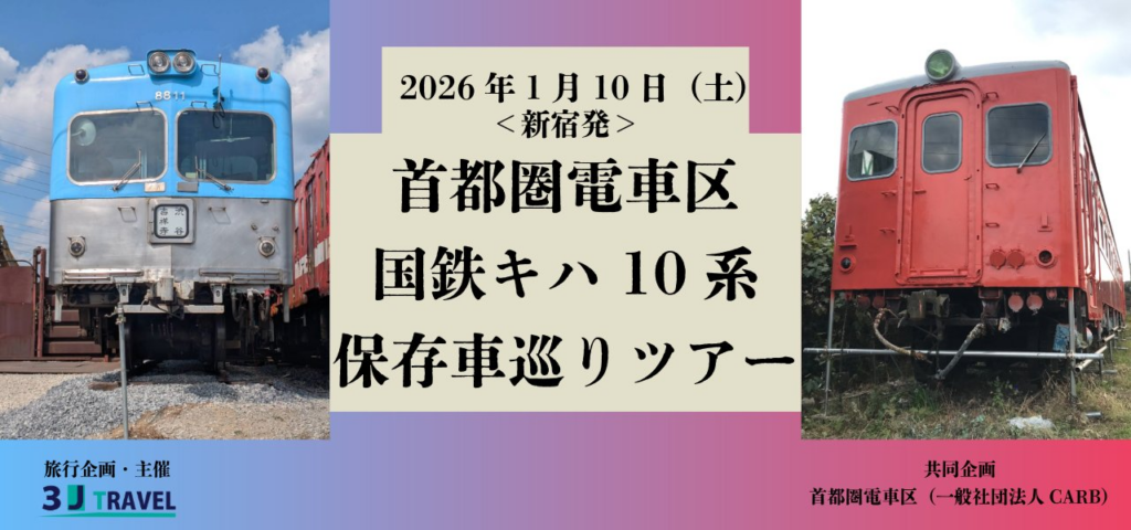 これまで、首都圏電車区の整備が整っていなかったこともあり、電車区へのご案内はクラウドファンディング支援者様等のみお招きしていました。この度、準備が整ったことに伴って、2025/1/10(土)に開催予定の3Jトラベル様のツアーにて一般公開を開始いたします。